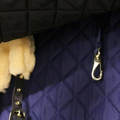 Der Kentucky Horsewear Stallvorhang ermöglicht dem Pferd die wohlverdiente Ruhe auf dem Turnier oder auch Zuhause. Der Stallvorhang hat 5 goldene Ringe zur Befestigung an der Box. Zudem ist der Stallvorhang mit 5 Snaphaken ausgestattet. An diesen praktischen Haken können Trensen, Schabrackenhalter usw. aufgehängt werden. Diese Haken befinden sich unter dem kleinen vorderen Vorhang. Durch die Diamantensteppung, die braune Biese aus Kunstleder und dem dezenten Kentucky Logo wirkt das Design sehr schick. Der Stallvorhang kann mit dem Kentucky Horsewear Kopfschutz und Türvorhang kombiniert werden. Es ist aus einem 600Denier High Tenacity Polyester und maschinenwaschbar bei 30°, kein Trockner