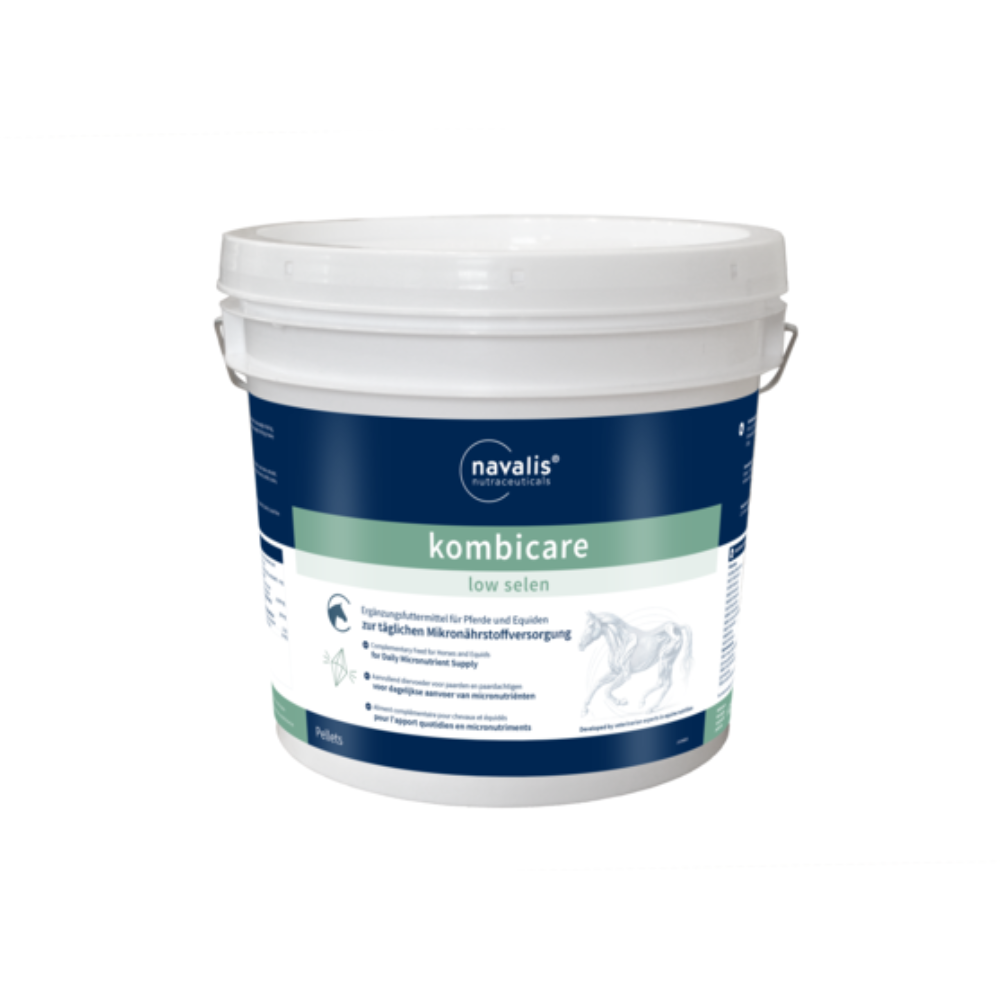 Beim navalis kombicare low selen handelt es sich um bedarfsgerecht dosierte und hoch bioverfügbare Ergänzungsfutter sowohl zur Vorbeugung als auch zum Ausgleich von fütterungsbedingten Nährstoffmängeln. Um ein Zuviel an Selen in der Gesamtfutterration ausschließen zu können, wurde der Selen-Gehalt bewusst niedrig gehalten. Eine Kombinationsmöglichkeit mit anderen Selen-haltigen Futtermitteln ist damit gegeben.